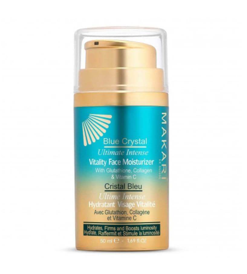 Makari Blue Crystal Crème Visage Éclaircissante unifie le teint, revitalise la peau et révèle un éclat lisse. Enrichie en glutathion, collagène et vitamine C, elle pénètre vite, cible rides, ridules, booste le renouvellement cellulaire, raffermit, hydrate, améliore l’élasticité, affine la texture, éclaircit taches brunes et favorise un teint uniforme. Commandez ce soin anti-âge pour une peau radieuse !